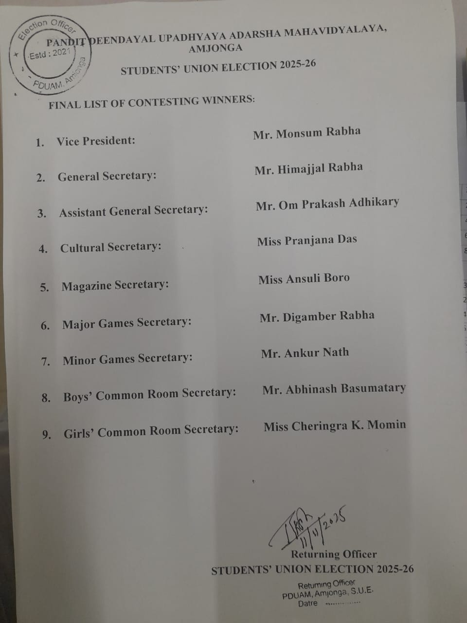 • Notice for Students Election 2025-26 FINAL LIST OF CONTESTING CANDIDATES:Click Here