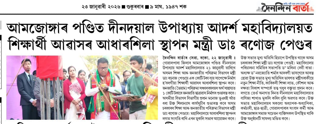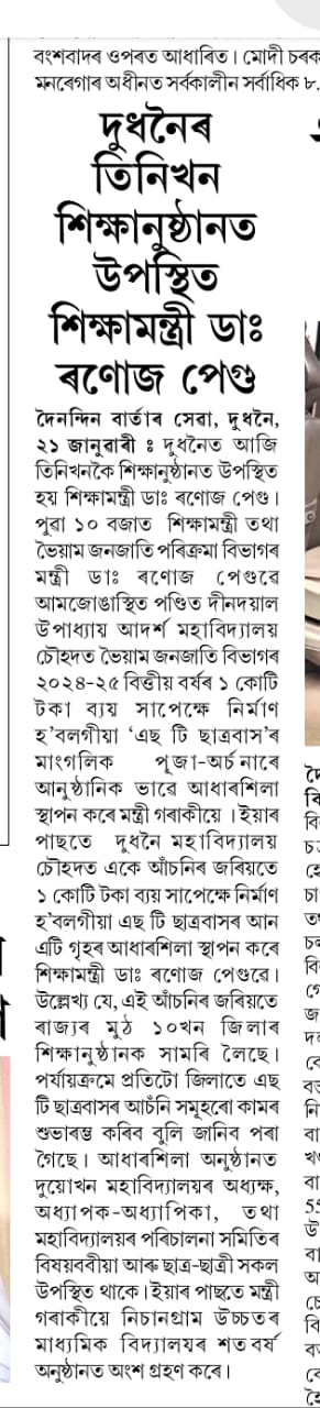 • Foundation Stone Laying Ceremony Of Boys' Hostel PDUAM, Amjonga, by Dr. Ranoj Pegu Hon'ble Minister...Click Here